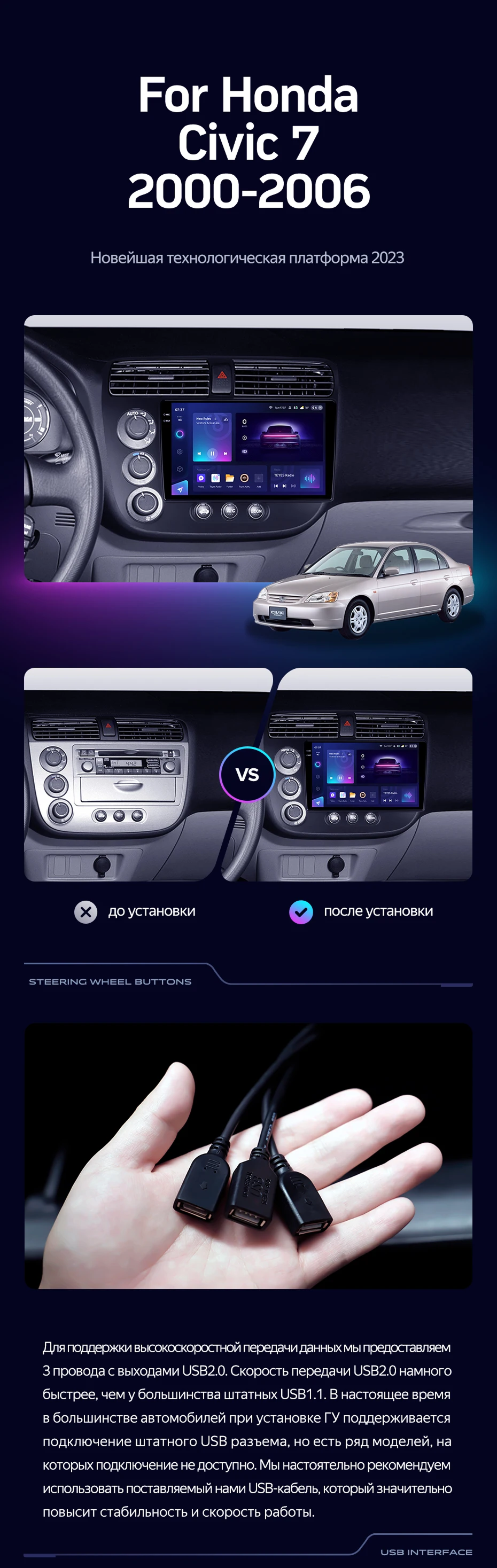 Переходная рамка Honda Civic 7 (2000-2006) F3 Правый руль (9") - купить всего за 7 000 руб. в интернет-магазине во Владимире Teyes.com.ru. ✓ Самый лучший выбор мультимедиа ✓ Лучшая замена штатному ГУ ✓ Тел. +7 (800) 775-31-74