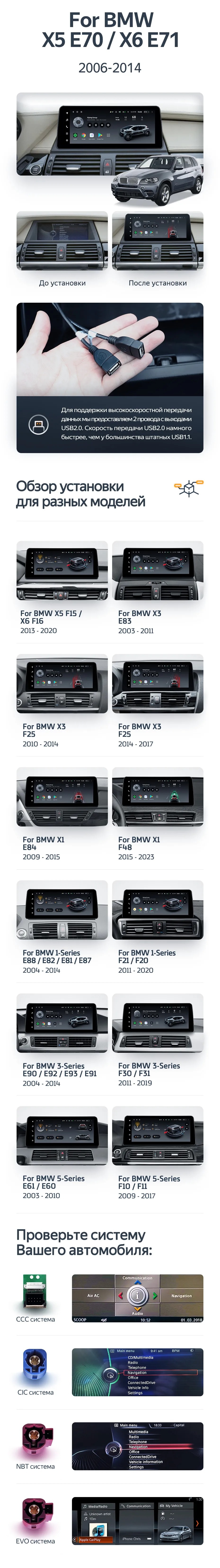 Установочный комплект для BMW 1-Series F21 F20 (2011-2020) включает переходную рамку и проводку.