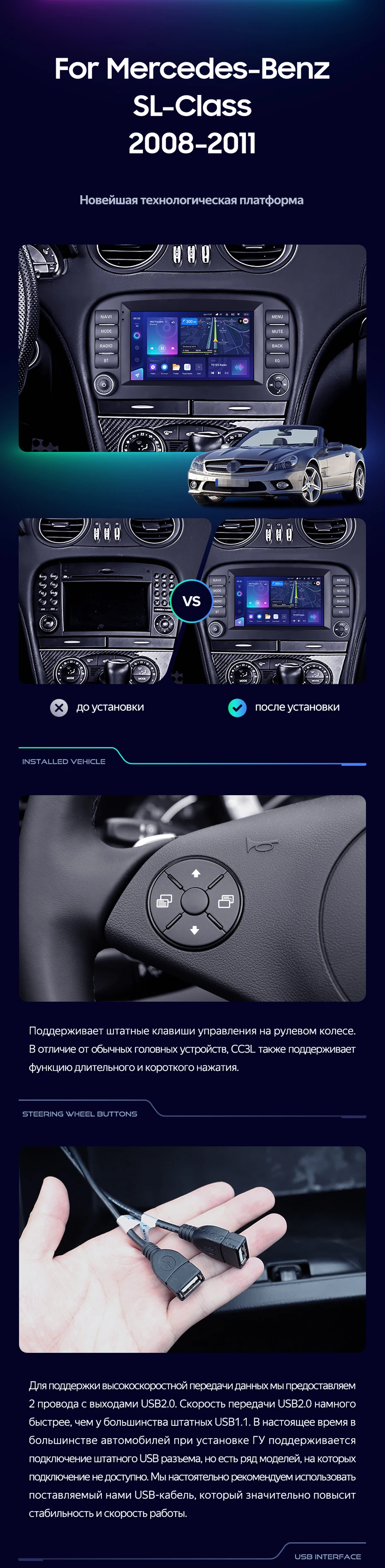 Переходная рамка Mercedes-Benz SL-Class R230 (2008-2011) (7") - купить всего за 7 000 руб. в интернет-магазине во Владимире Teyes.com.ru. ✓ Самый лучший выбор мультимедиа ✓ Лучшая замена штатному ГУ ✓ Тел. +7 (800) 775-31-74