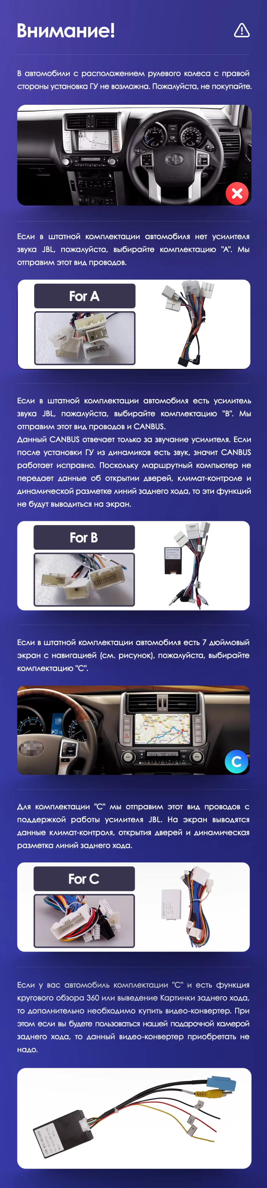 | Дополнительные аксессуары | USB-видеорегистратор, TPMS, передние парктроники, диагностический адаптер OBD | USB-видеорегистратор, TPMS, передние парктроники, диагностический адаптер OBD | USB-видеорегистратор, TPMS |