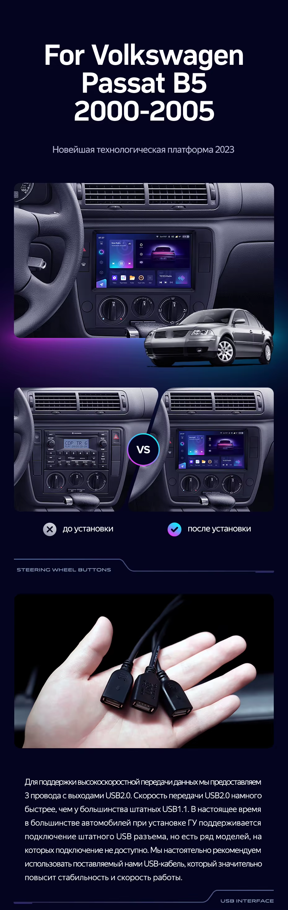 Штатная магнитола Teyes CC3 2K 4/32 Volkswagen Passat B5 (2000-2005) - купить всего за 40 260 руб. в интернет-магазине во Владимире Teyes.com.ru. ✓ Самый лучший выбор мультимедиа ✓ Лучшая замена штатному ГУ ✓ Тел. +7 (800) 775-31-74