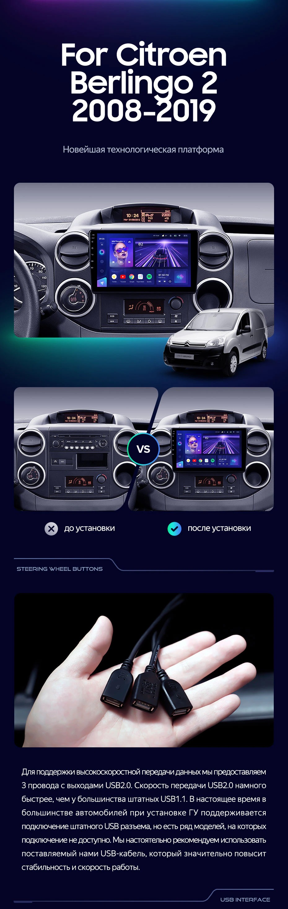 Штатная магнитола Teyes CC3 2K 360 6/128 Citroen Berlingo 2 B9 (2008-2019) (13") - купить всего за 51 400 руб. в интернет-магазине во Владимире Teyes.com.ru. ✓ Самый лучший выбор мультимедиа ✓ Лучшая замена штатному ГУ ✓ Тел. +7 (800) 775-31-74