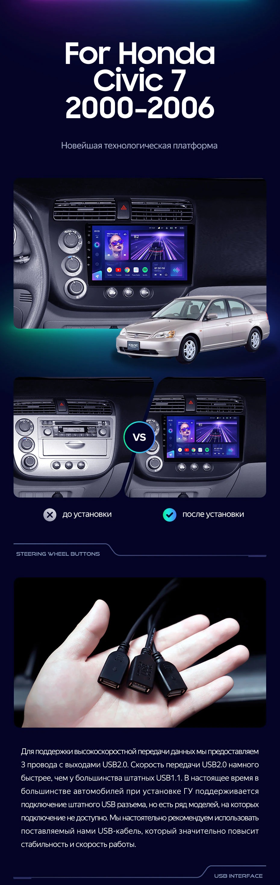 Штатная магнитола Teyes CC3 2K 360 6/128 Honda Civic 7 (2000-2006) F1 (13") - купить всего за 51 000 руб. в интернет-магазине во Владимире Teyes.com.ru. ✓ Самый лучший выбор мультимедиа ✓ Лучшая замена штатному ГУ ✓ Тел. +7 (800) 775-31-74