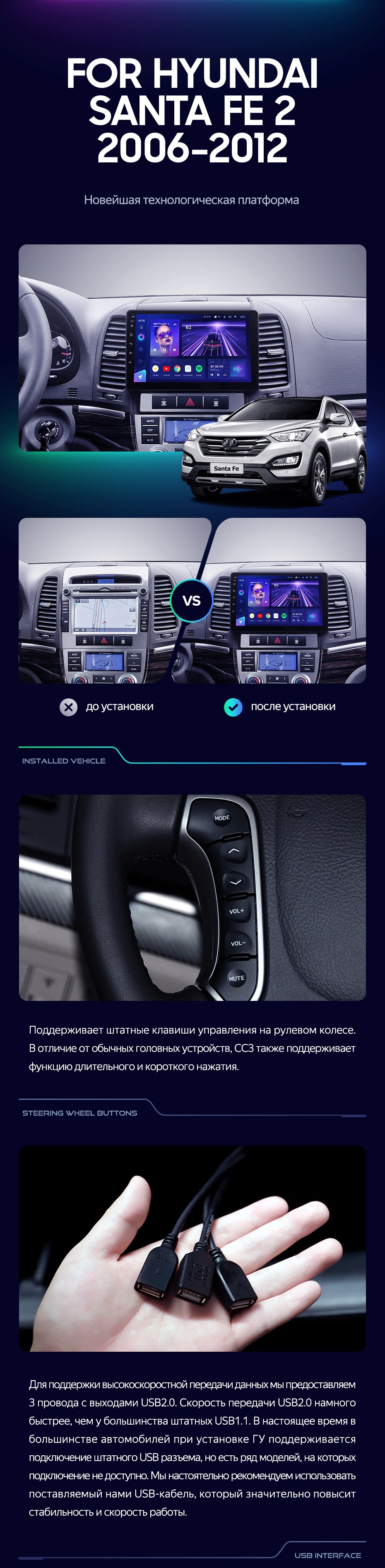 Штатная магнитола Teyes CC3 2K 360 6/128 Hyundai Santa Fe 2 (2006-2012) (13") - купить всего за 50 960 руб. в интернет-магазине во Владимире Teyes.com.ru. ✓ Самый лучший выбор мультимедиа ✓ Лучшая замена штатному ГУ ✓ Тел. +7 (800) 775-31-74