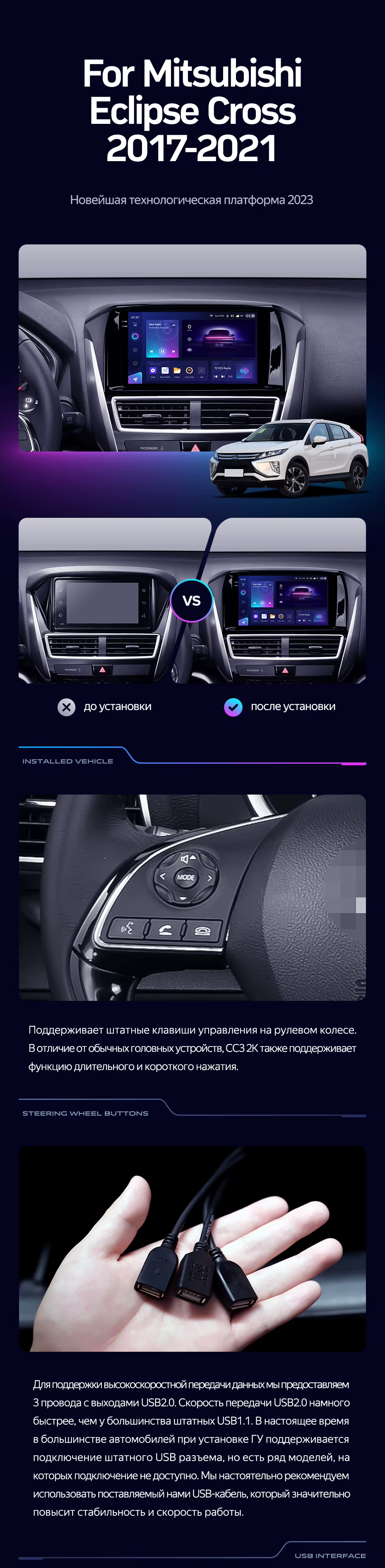 Штатная магнитола Teyes CC3 2K 360 6/128 Mitsubishi Eclipse Cross 1 (2017-2021) F1 - купить всего за 55 540 руб. в интернет-магазине во Владимире Teyes.com.ru. ✓ Самый лучший выбор мультимедиа ✓ Лучшая замена штатному ГУ ✓ Тел. +7 (800) 775-31-74