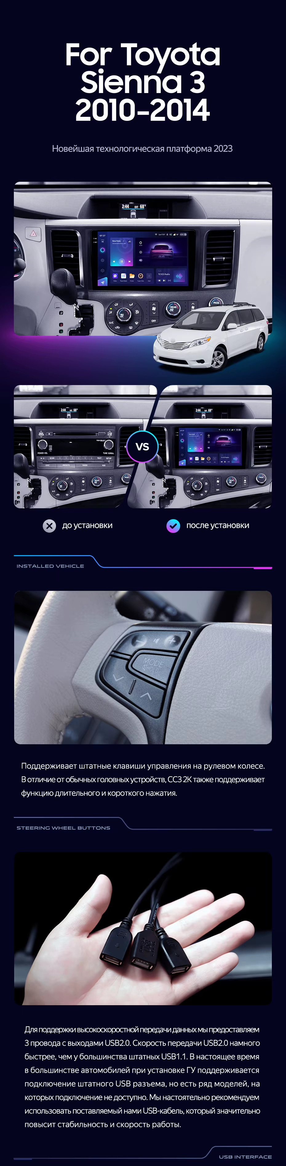 Штатная магнитола Teyes CC3 2K 360 6/128 Toyota Sienna 3 XL30 (2010-2014) - купить всего за 58 100 руб. в интернет-магазине во Владимире Teyes.com.ru. ✓ Самый лучший выбор мультимедиа ✓ Лучшая замена штатному ГУ ✓ Тел. +7 (800) 775-31-74