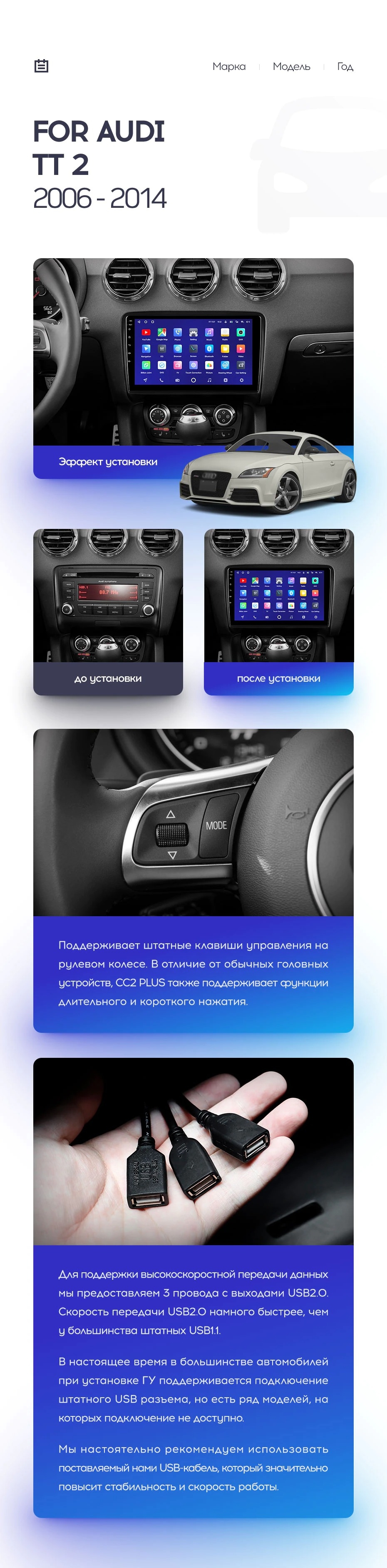 Штатная магнитола Teyes CC3 2K 4/32 Audi TT 2 (2006-2014) (13") - купить всего за 42 500 руб. в интернет-магазине во Владимире Teyes.com.ru. ✓ Самый лучший выбор мультимедиа ✓ Лучшая замена штатному ГУ ✓ Тел. +7 (800) 775-31-74