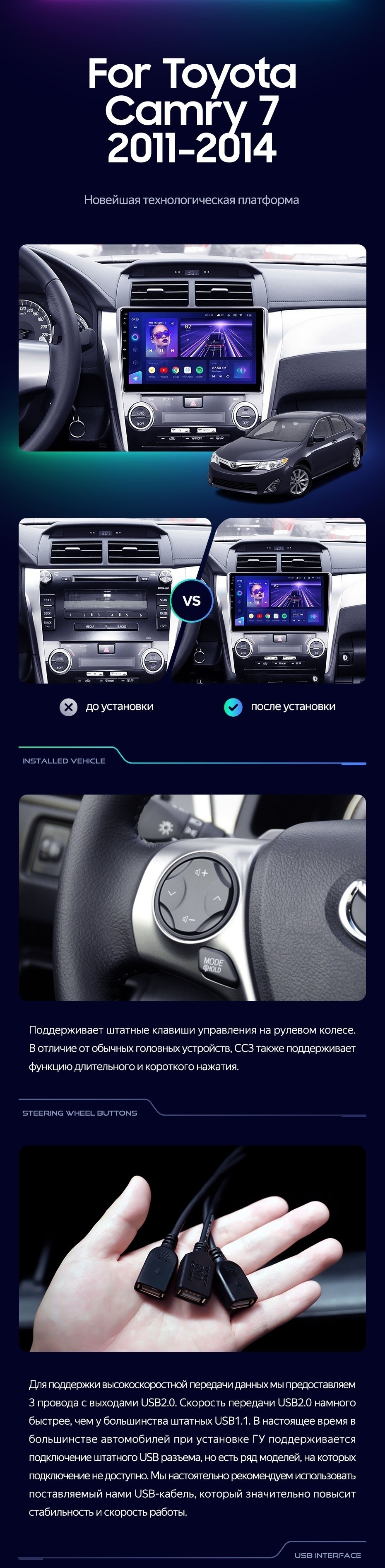 Штатная магнитола Teyes CC3 2K 4/32 Toyota Camry 7 XV 50 55 (2011-2014) F4 (13") - купить всего за 41 500 руб. в интернет-магазине во Владимире Teyes.com.ru. ✓ Самый лучший выбор мультимедиа ✓ Лучшая замена штатному ГУ ✓ Тел. +7 (800) 775-31-74