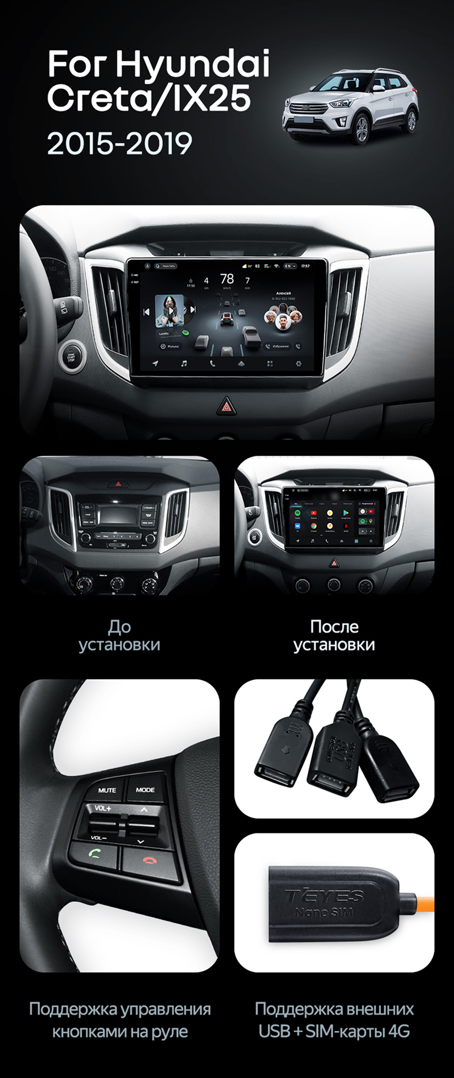 Штатная магнитола Teyes CC3 2K 4/64 Hyundai Creta 1 (2015-2019) с кнопками - купить всего за 45 500 руб. в интернет-магазине во Владимире Teyes.com.ru. ✓ Самый лучший выбор мультимедиа ✓ Лучшая замена штатному ГУ ✓ Тел. +7 (800) 775-31-74