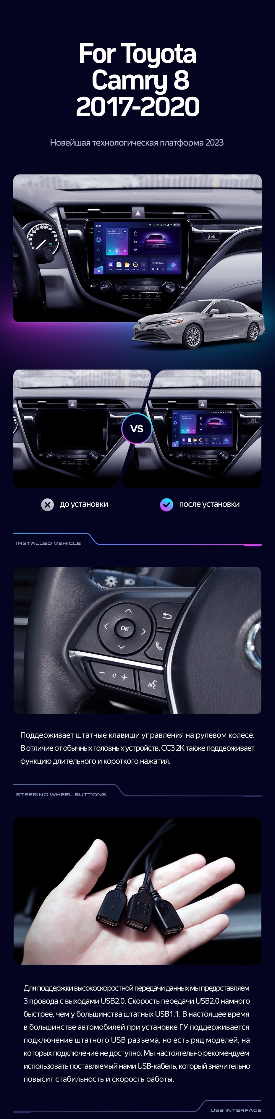 Штатная магнитола Teyes CC3 2K 4/64 Toyota Camry 8 XV 70 (2017-2020) F1 - купить всего за 48 520 руб. в интернет-магазине во Владимире Teyes.com.ru. ✓ Самый лучший выбор мультимедиа ✓ Лучшая замена штатному ГУ ✓ Тел. +7 (800) 775-31-74