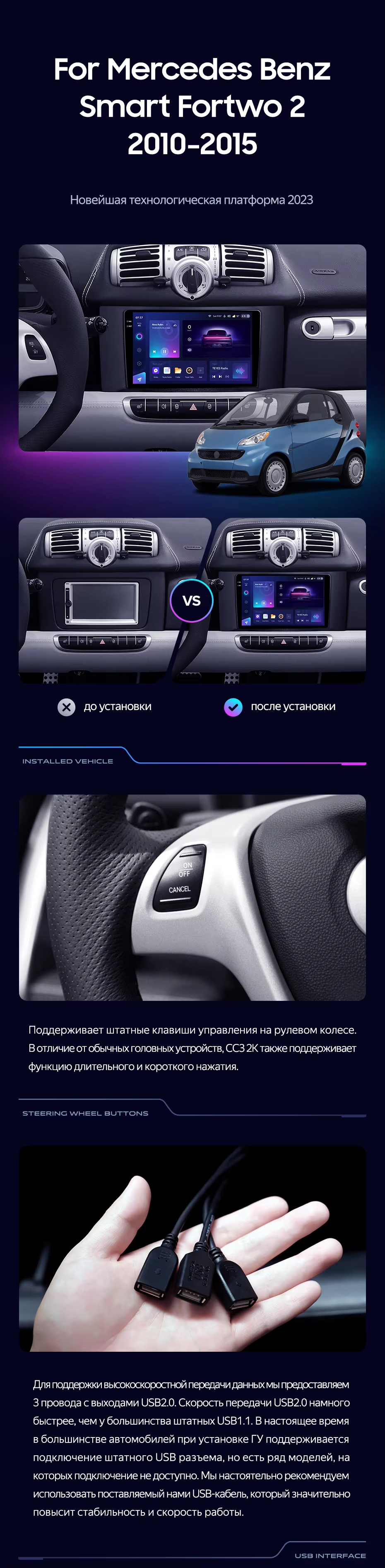 Штатная магнитола Teyes CC3 2K 6/128 Mercedes-Benz Smart Fortwo 2 (2010-2015) F1 (13") - купить всего за 47 160 руб. в интернет-магазине во Владимире Teyes.com.ru. ✓ Самый лучший выбор мультимедиа ✓ Лучшая замена штатному ГУ ✓ Тел. +7 (800) 775-31-74
