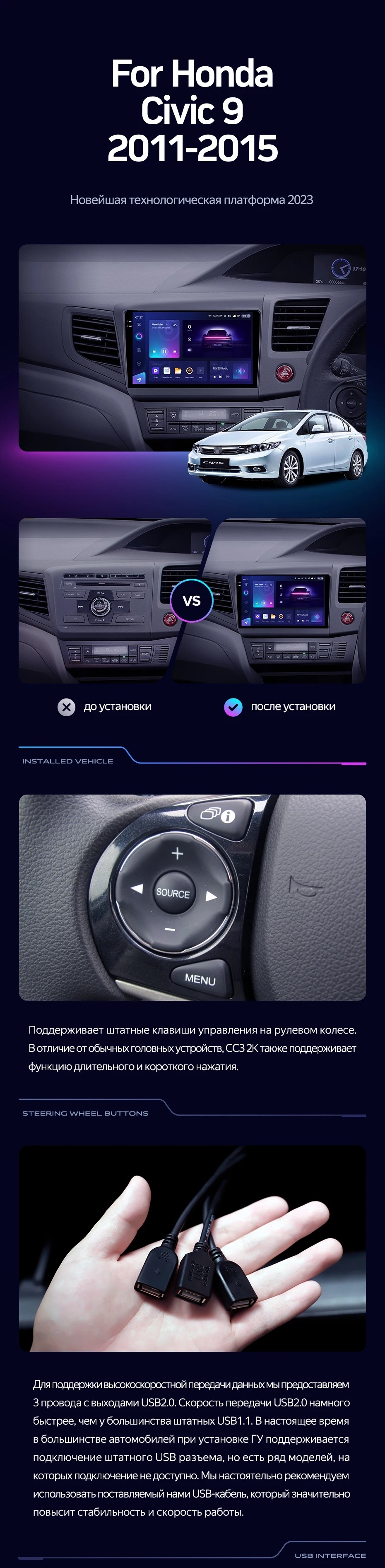 Штатная магнитола Teyes CC3 4/32 Honda Civic 9 FB FK FD (2011-2015) Правый руль - купить всего за 34 230 руб. в интернет-магазине во Владимире Teyes.com.ru. ✓ Самый лучший выбор мультимедиа ✓ Лучшая замена штатному ГУ ✓ Тел. +7 (800) 775-31-74
