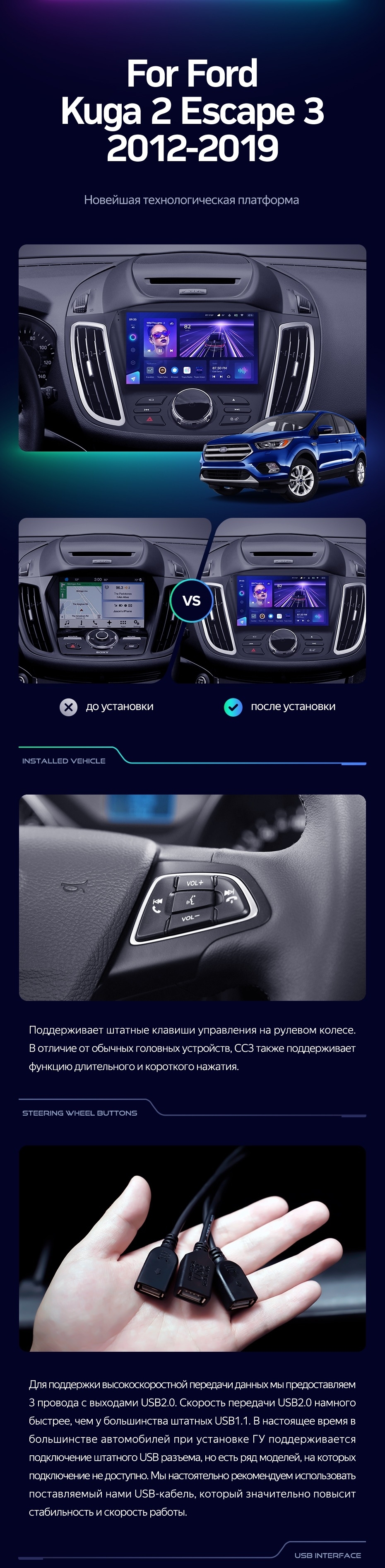 Штатная магнитола Teyes CC3 4/32 Ford Kuga 2 (2012-2019) Тип-B - купить всего за 36 030 руб. в интернет-магазине во Владимире Teyes.com.ru. ✓ Самый лучший выбор мультимедиа ✓ Лучшая замена штатному ГУ ✓ Тел. +7 (800) 775-31-74