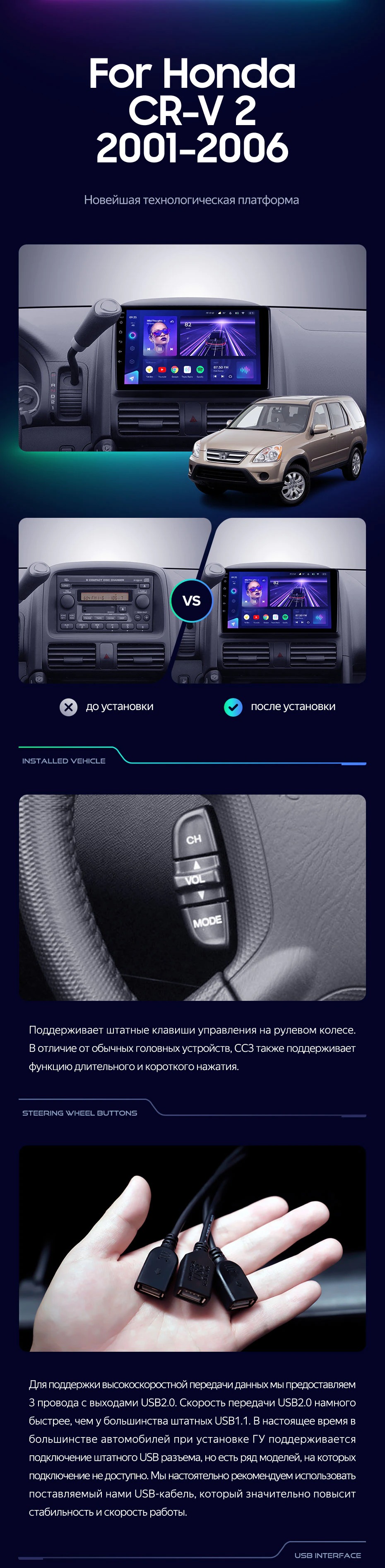 Штатная магнитола Teyes CC3 4/32 Honda CR-V 2 (2001-2006) - купить всего за 32 180 руб. в интернет-магазине во Владимире Teyes.com.ru. ✓ Самый лучший выбор мультимедиа ✓ Лучшая замена штатному ГУ ✓ Тел. +7 (800) 775-31-74