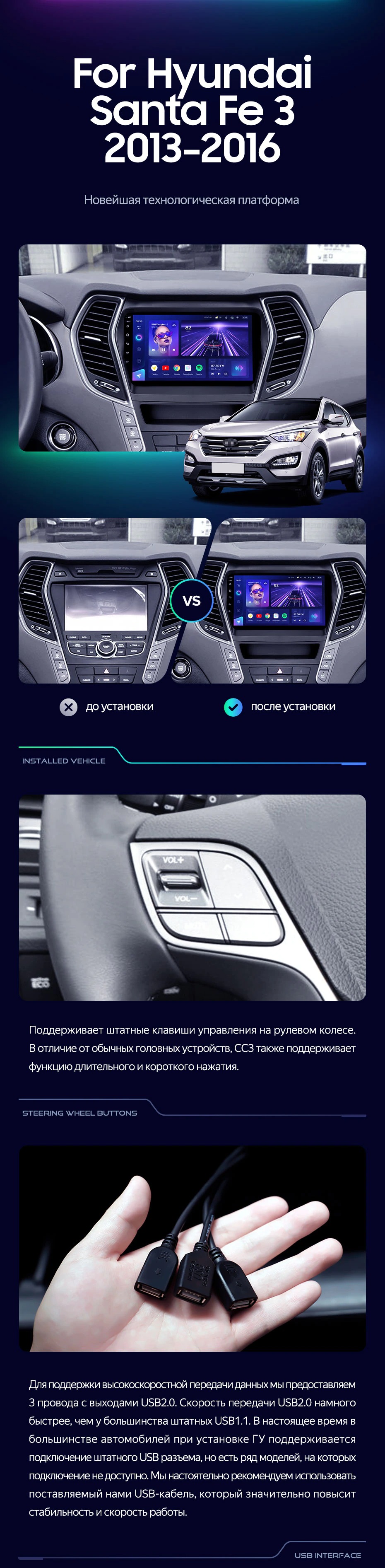 Штатная магнитола Teyes CC3 4/32 Hyundai Santa Fe 3 (2013-2016) Тип-B - купить всего за 33 530 руб. в интернет-магазине во Владимире Teyes.com.ru. ✓ Самый лучший выбор мультимедиа ✓ Лучшая замена штатному ГУ ✓ Тел. +7 (800) 775-31-74