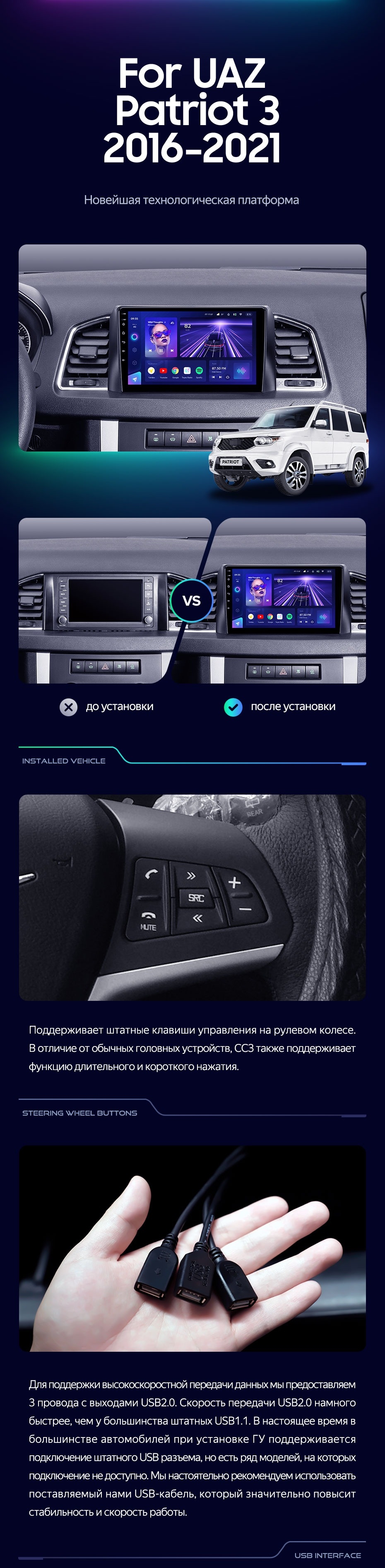 Штатная магнитола Teyes CC3 4/32 UAZ Patriot 3 (2016-2021) F1 - купить всего за 32 270 руб. в интернет-магазине во Владимире Teyes.com.ru. ✓ Самый лучший выбор мультимедиа ✓ Лучшая замена штатному ГУ ✓ Тел. +7 (800) 775-31-74