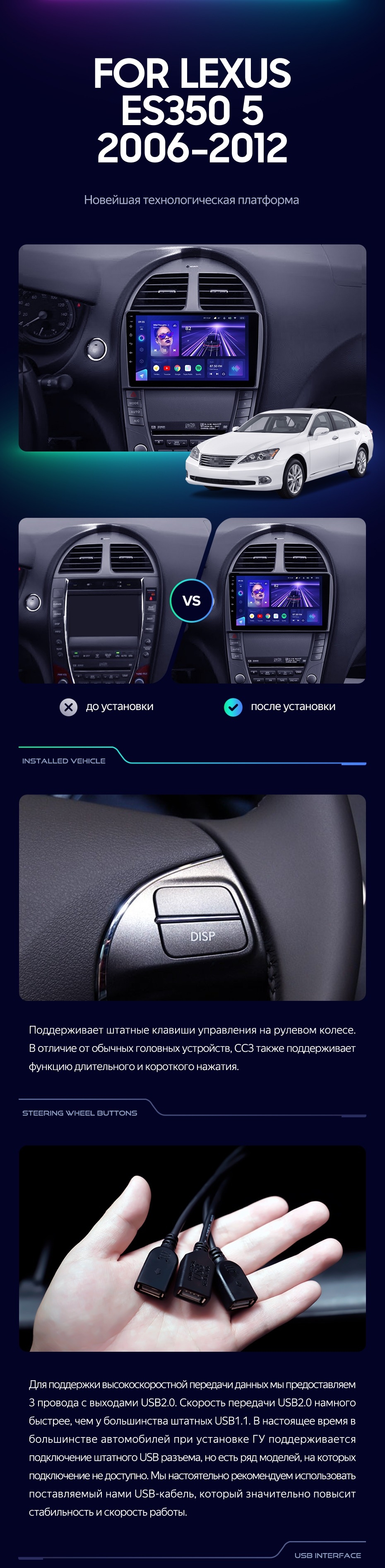 Штатная магнитола Teyes CC3L 4/32 Lexus ES350 5 V XV40 (2006-2012) Тип-C - купить всего за 31 700 руб. в интернет-магазине во Владимире Teyes.com.ru. ✓ Самый лучший выбор мультимедиа ✓ Лучшая замена штатному ГУ ✓ Тел. +7 (800) 775-31-74