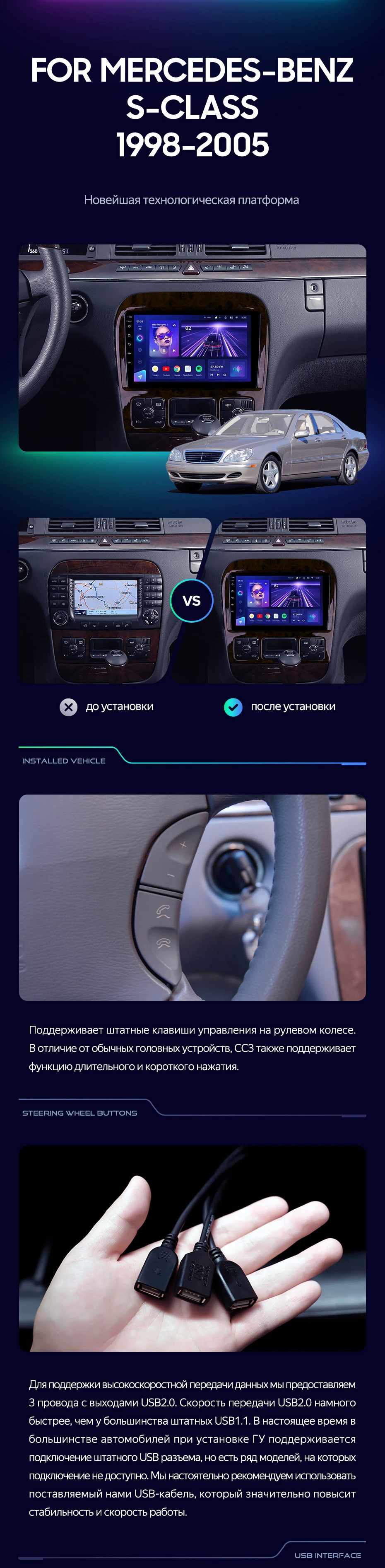 Штатная магнитола Teyes CC3L 4/32 Mercedes-Benz S-Class W220 VV220 (1998-2005) - купить всего за 32 300 руб. в интернет-магазине во Владимире Teyes.com.ru. ✓ Самый лучший выбор мультимедиа ✓ Лучшая замена штатному ГУ ✓ Тел. +7 (800) 775-31-74