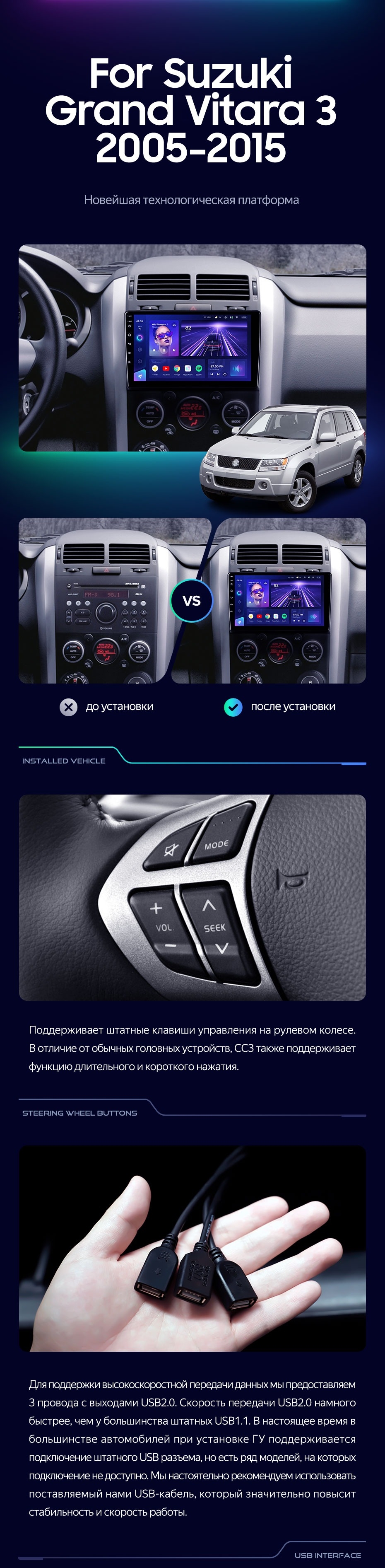 Штатная магнитола Teyes CC3L 4/32 Suzuki Grand Vitara 3 (2005-2015) - купить всего за 27 900 руб. в интернет-магазине во Владимире Teyes.com.ru. ✓ Самый лучший выбор мультимедиа ✓ Лучшая замена штатному ГУ ✓ Тел. +7 (800) 775-31-74