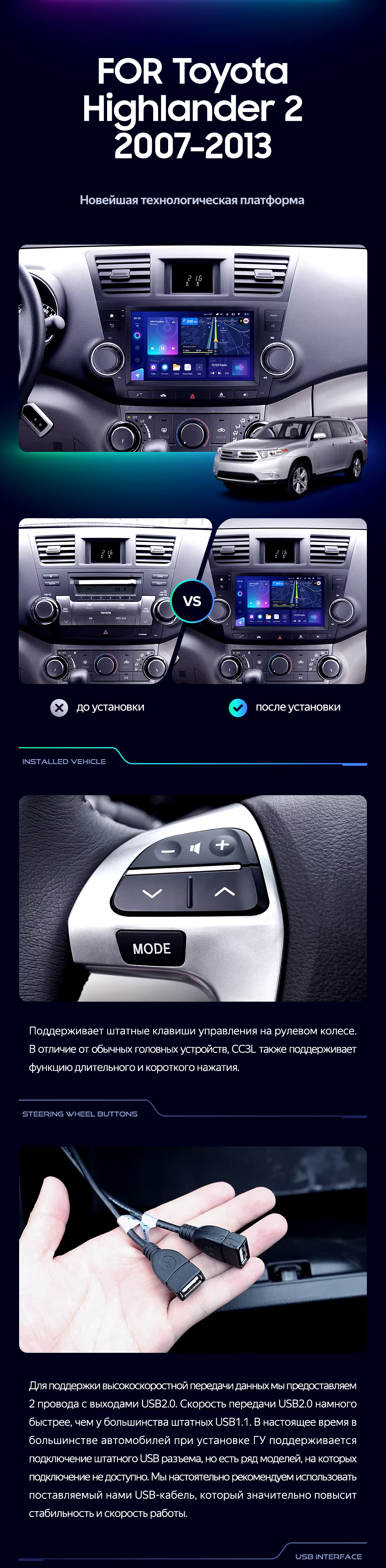 Штатная магнитола Teyes CC3L 4/32 Toyota Highlander 2 XU40 (2007-2013) F3 9" - купить всего за 30 900 руб. в интернет-магазине во Владимире Teyes.com.ru. ✓ Самый лучший выбор мультимедиа ✓ Лучшая замена штатному ГУ ✓ Тел. +7 (800) 775-31-74