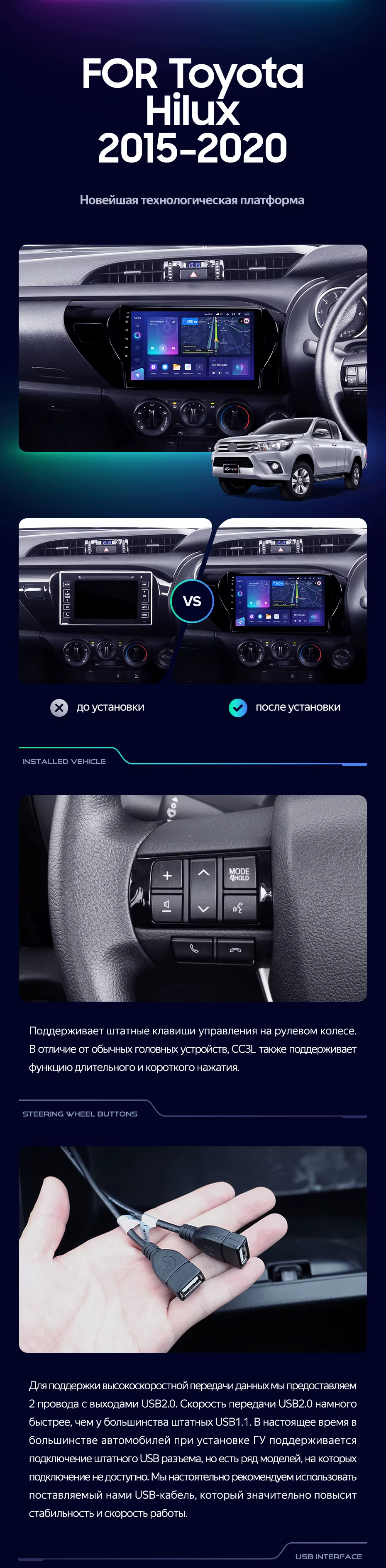 Штатная магнитола Teyes CC3L 4/32 Toyota Hilux Pick Up AN120 (2015-2020) Правый руль - купить всего за 30 100 руб. в интернет-магазине во Владимире Teyes.com.ru. ✓ Самый лучший выбор мультимедиа ✓ Лучшая замена штатному ГУ ✓ Тел. +7 (800) 775-31-74