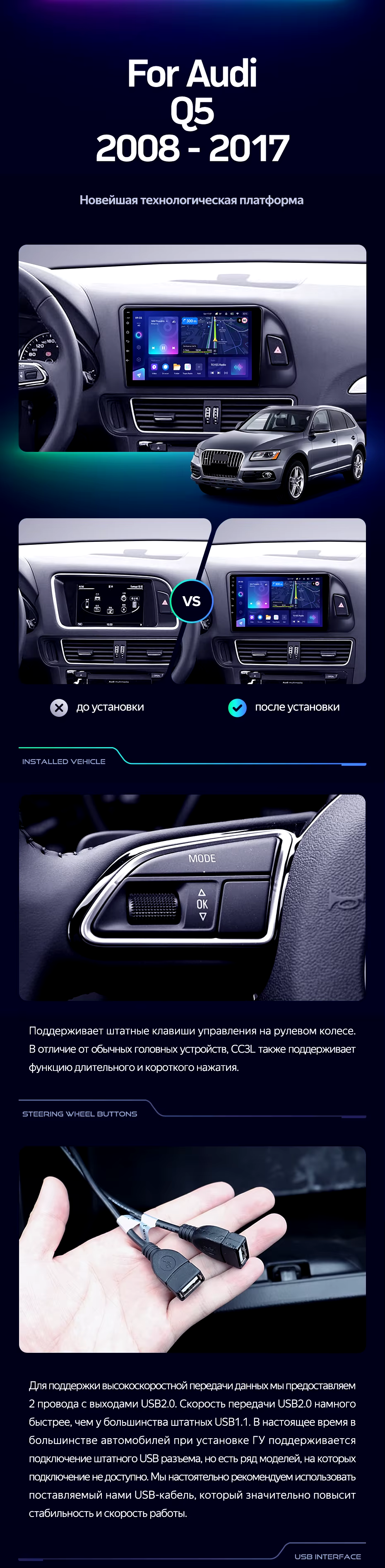 Штатная магнитола Teyes CC3L 4/64 Audi Q5 8R (2008-2017) Тип-B - купить всего за 33 800 руб. в интернет-магазине во Владимире Teyes.com.ru. ✓ Самый лучший выбор мультимедиа ✓ Лучшая замена штатному ГУ ✓ Тел. +7 (800) 775-31-74