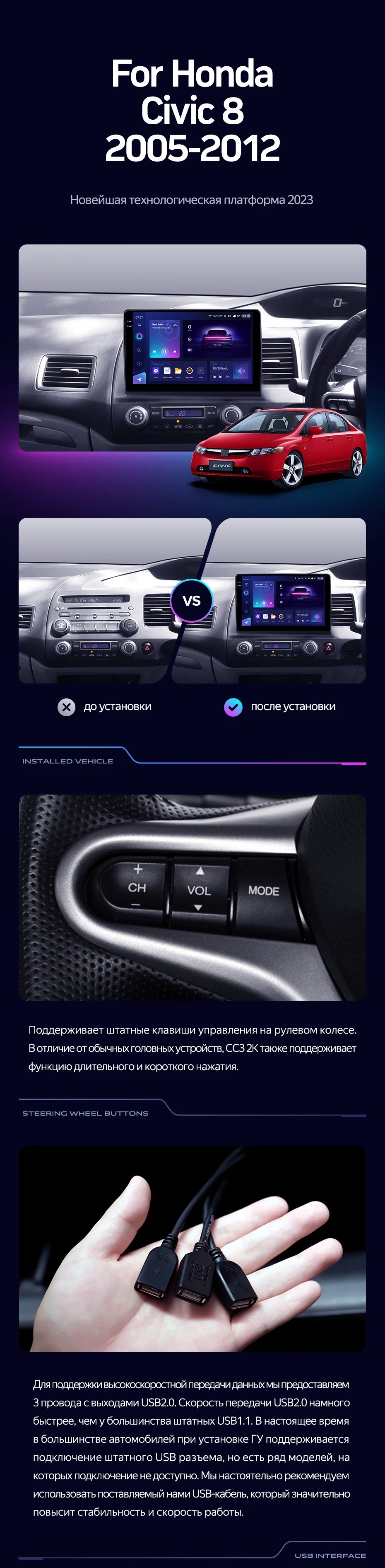 Штатная магнитола Teyes CC3L 4/64 Honda Civic 8 FK FN FD (2005-2012) Правый руль - купить всего за 30 800 руб. в интернет-магазине во Владимире Teyes.com.ru. ✓ Самый лучший выбор мультимедиа ✓ Лучшая замена штатному ГУ ✓ Тел. +7 (800) 775-31-74