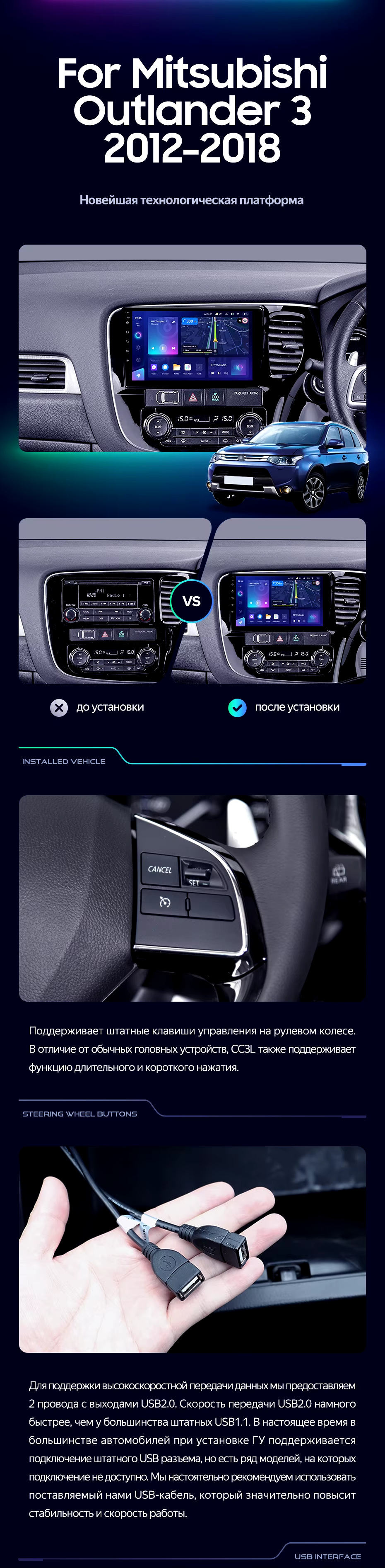 Штатная магнитола Teyes CC3L 4/64 Mitsubishi Outlander 3 GF0W GG0W (2012-2018) Тип-B Правый руль - купить всего за 32 800 руб. в интернет-магазине во Владимире Teyes.com.ru. ✓ Самый лучший выбор мультимедиа ✓ Лучшая замена штатному ГУ ✓ Тел. +7 (800) 775-31-74