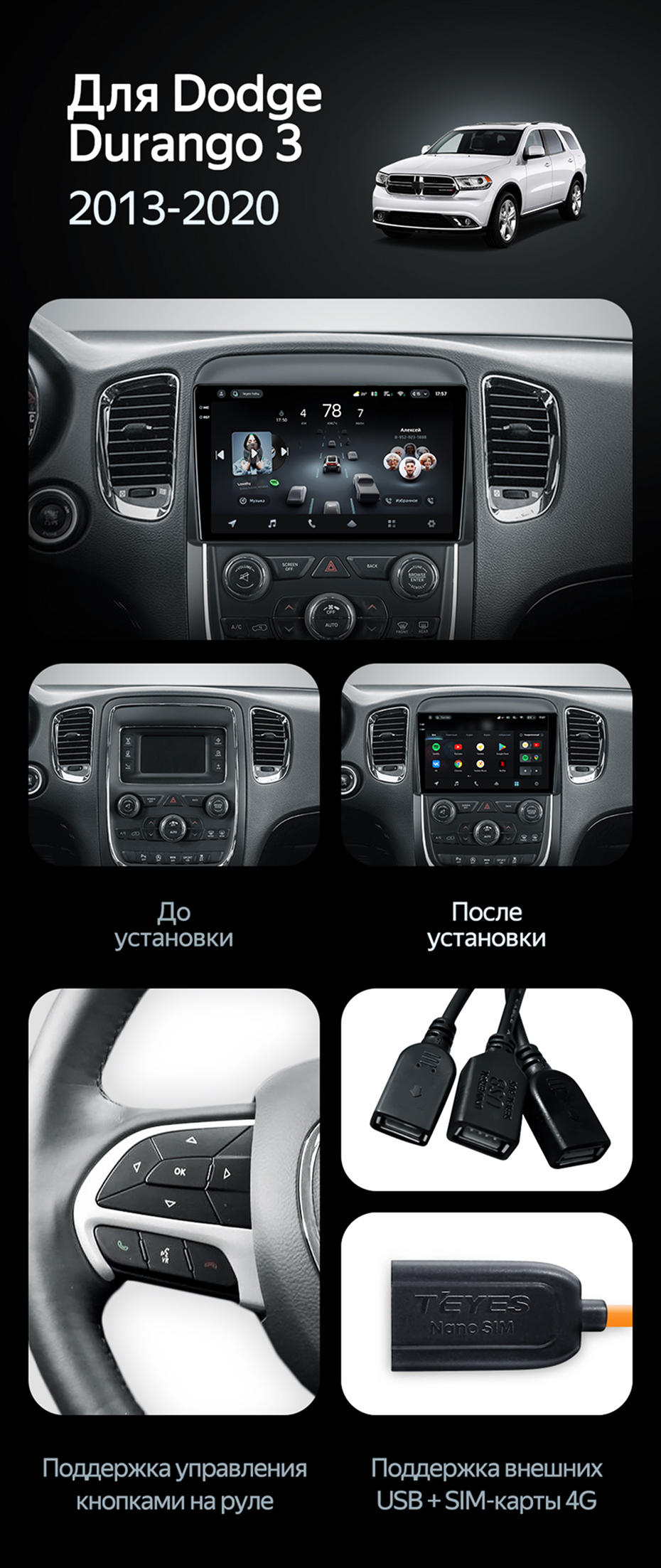 Штатная магнитола Teyes CC3L WiFi 2/32 Dodge Durango 3 (2013-2020) - купить всего за 19 300 руб. в интернет-магазине во Владимире Teyes.com.ru. ✓ Самый лучший выбор мультимедиа ✓ Лучшая замена штатному ГУ ✓ Тел. +7 (800) 775-31-74