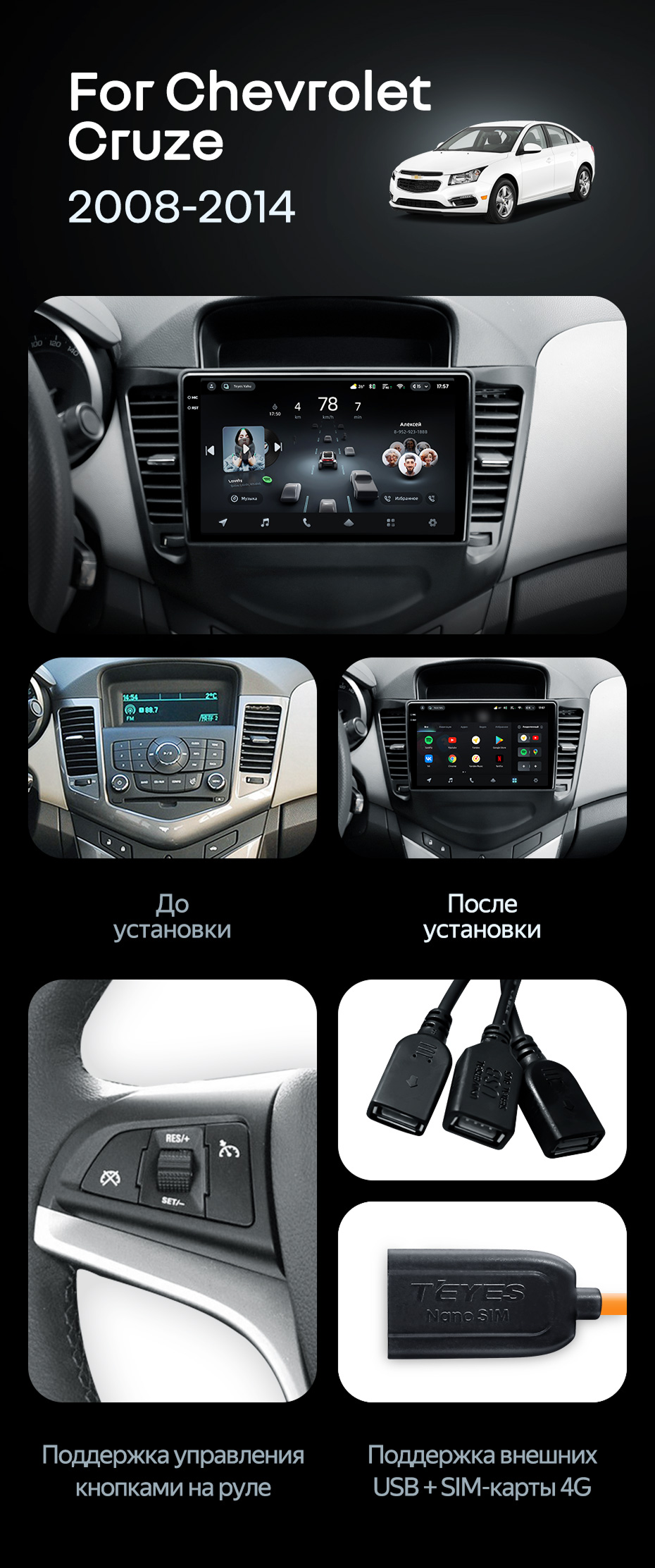 Штатная магнитола Teyes CC4 6/64 Chevrolet Cruze J300 (2008-2014) - купить всего за 48 050 руб. в интернет-магазине во Владимире Teyes.com.ru. ✓ Самый лучший выбор мультимедиа ✓ Лучшая замена штатному ГУ ✓ Тел. +7 (800) 775-31-74