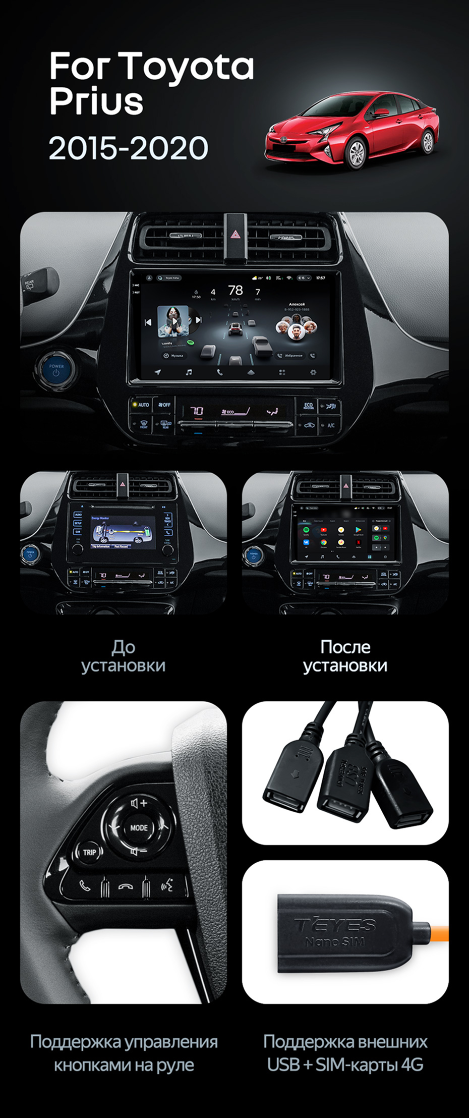 Штатная магнитола Teyes CC4 6/64 Toyota Prius XW50 (2015-2020) - купить всего за 48 300 руб. в интернет-магазине во Владимире Teyes.com.ru. ✓ Самый лучший выбор мультимедиа ✓ Лучшая замена штатному ГУ ✓ Тел. +7 (800) 775-31-74