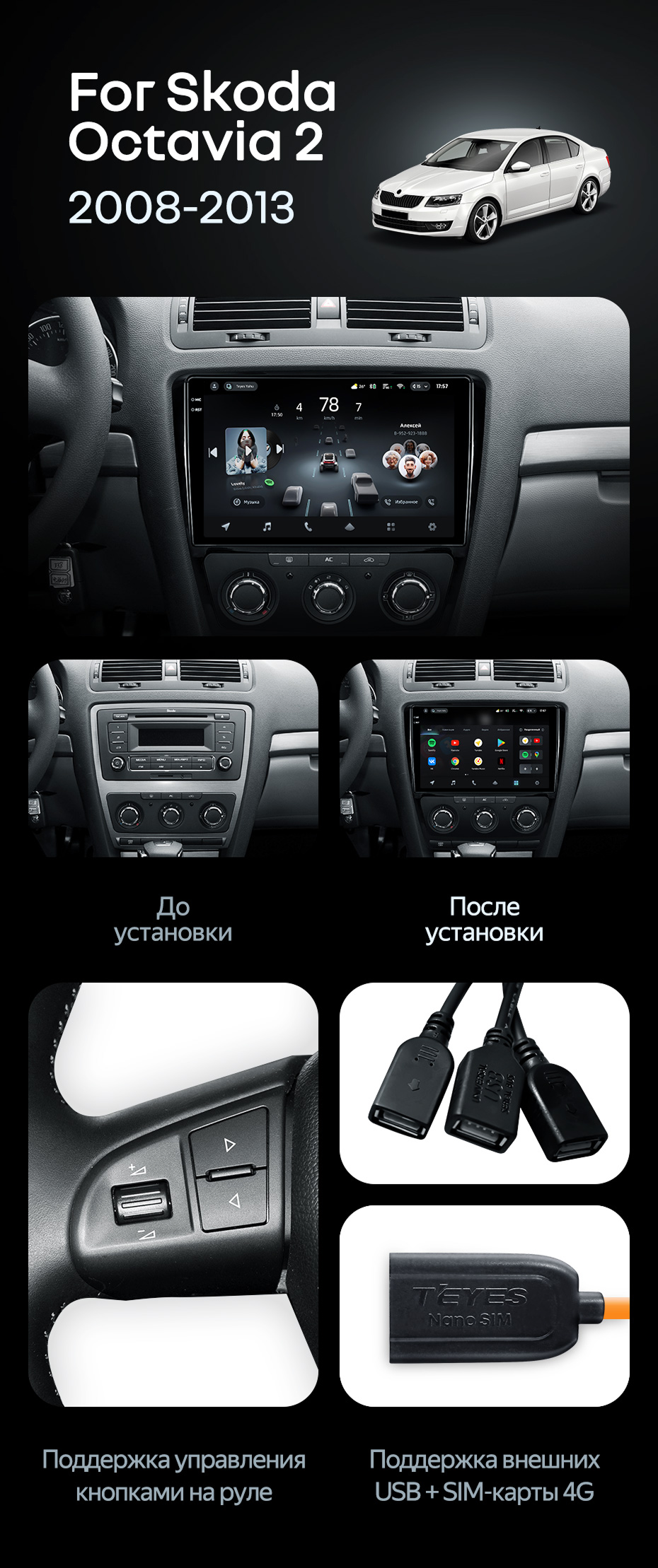 Штатная магнитола Teyes CC4 8/128 Skoda Octavia 2 A5 (2008-2013) - купить всего за 53 200 руб. в интернет-магазине во Владимире Teyes.com.ru. ✓ Самый лучший выбор мультимедиа ✓ Лучшая замена штатному ГУ ✓ Тел. +7 (800) 775-31-74