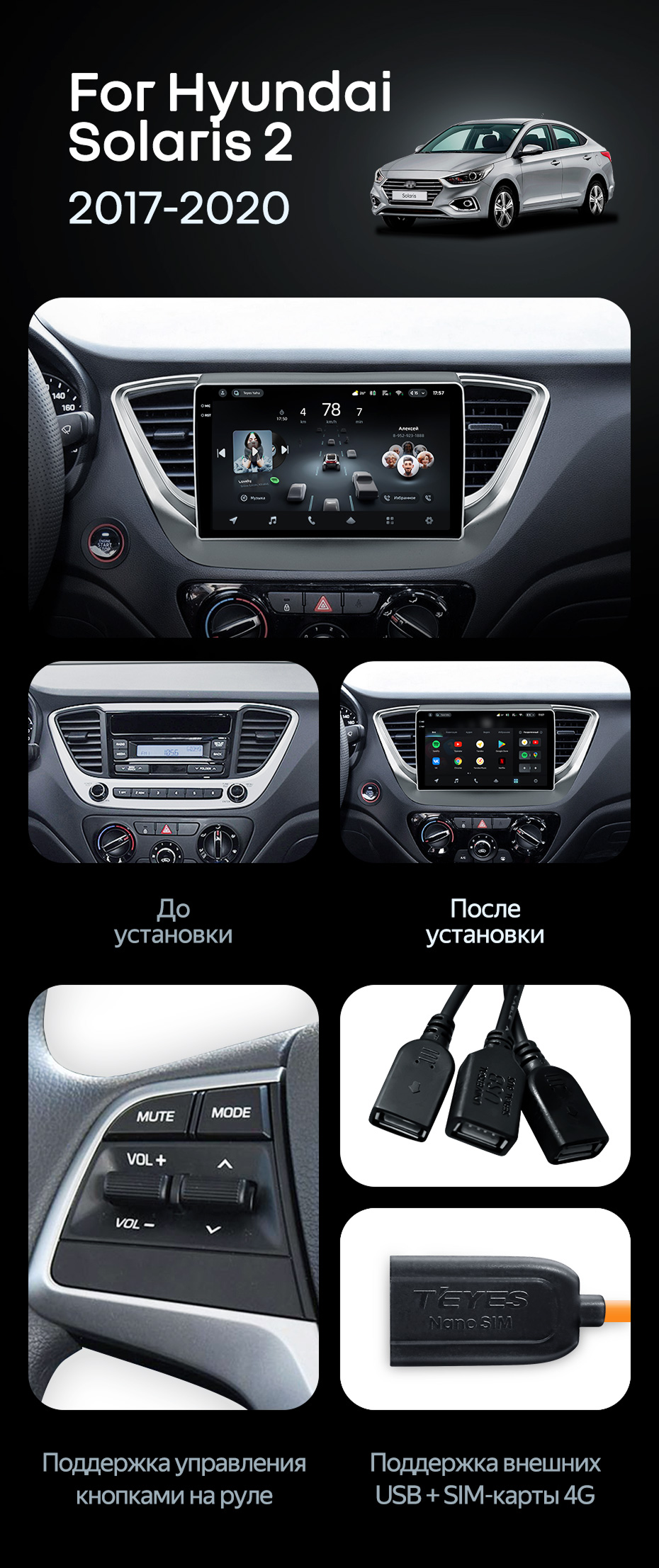 Штатная магнитола Teyes CC4 Pro 12/256 Hyundai Solaris 2 (2017-2020) F1 Тип-A - купить всего за 65 940 руб. в интернет-магазине во Владимире Teyes.com.ru. ✓ Самый лучший выбор мультимедиа ✓ Лучшая замена штатному ГУ ✓ Тел. +7 (800) 775-31-74