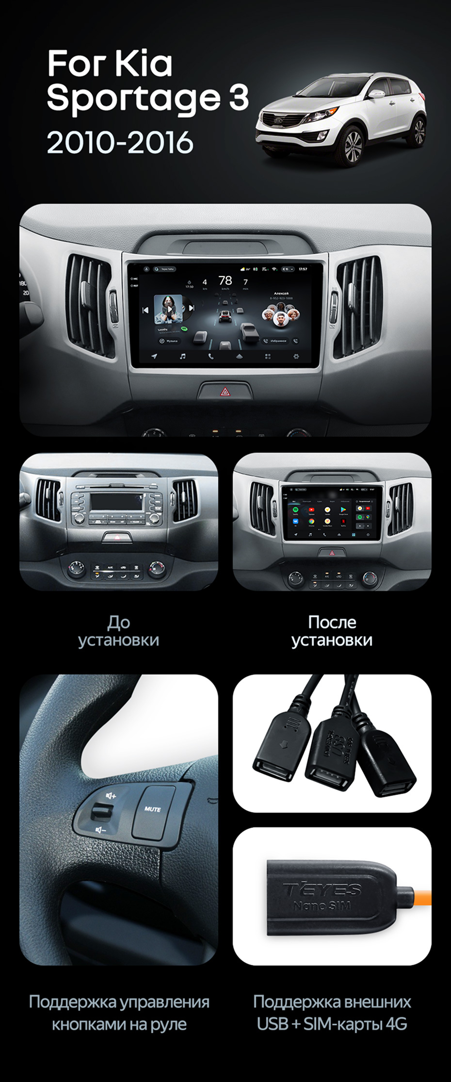 Штатная магнитола Teyes CC4 Pro 12/256 Kia Sportage 3 SL (2010-2016) Тип-A - купить всего за 67 850 руб. в интернет-магазине во Владимире Teyes.com.ru. ✓ Самый лучший выбор мультимедиа ✓ Лучшая замена штатному ГУ ✓ Тел. +7 (800) 775-31-74