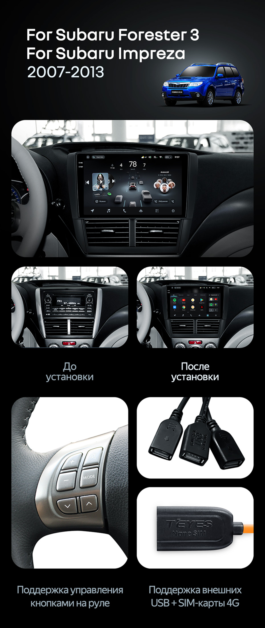 Штатная магнитола Teyes CC4 Pro 12/256 Subaru Forester 3 SH (2007-2013) - купить всего за 66 060 руб. в интернет-магазине во Владимире Teyes.com.ru. ✓ Самый лучший выбор мультимедиа ✓ Лучшая замена штатному ГУ ✓ Тел. +7 (800) 775-31-74