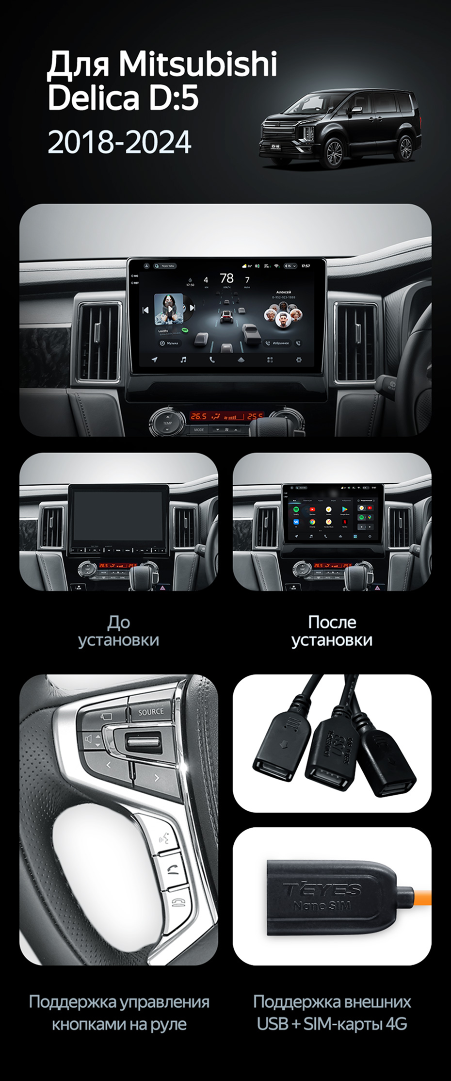 Штатная магнитола Teyes CC4 Pro 360 12/256 Mitsubishi Delica D:5 (2018-2024) - купить всего за 88 220 руб. в интернет-магазине во Владимире Teyes.com.ru. ✓ Самый лучший выбор мультимедиа ✓ Лучшая замена штатному ГУ ✓ Тел. +7 (800) 775-31-74