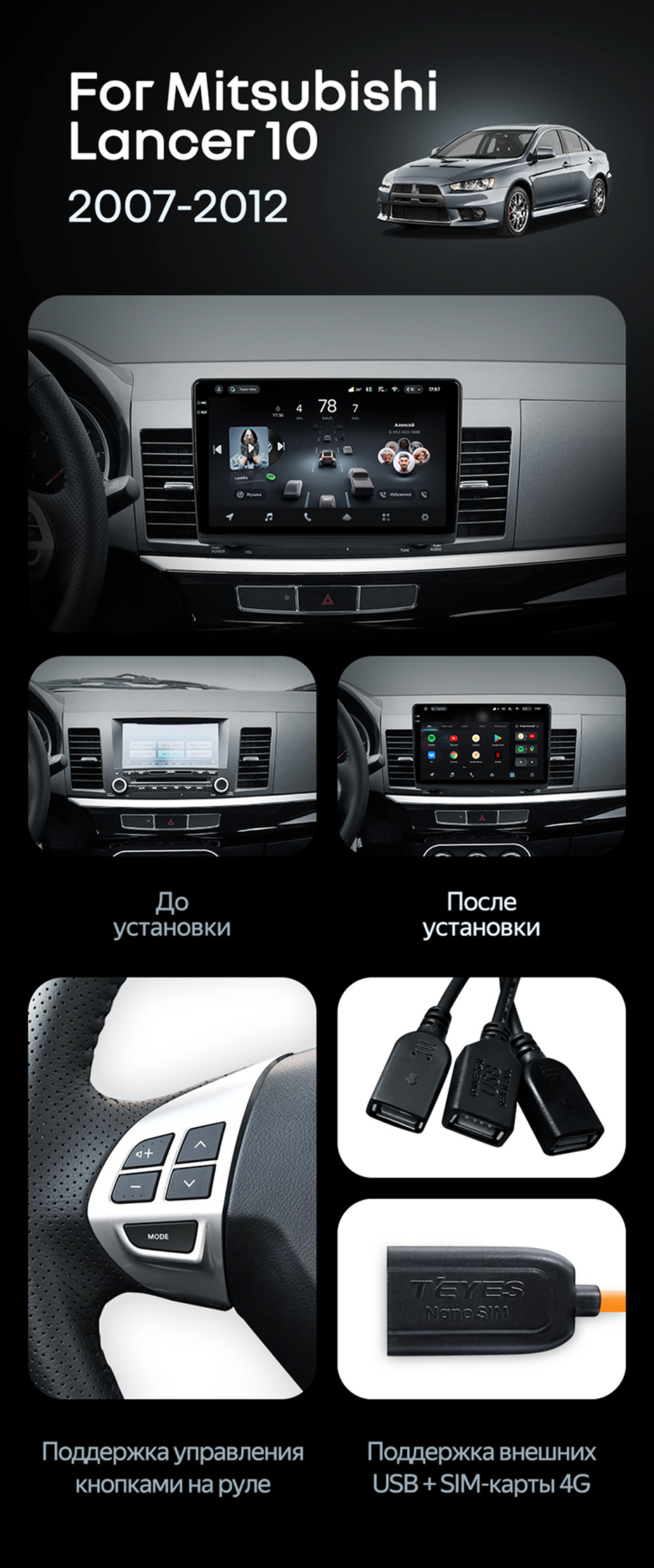 Штатная магнитола Teyes CC4 Pro 8/128 Mitsubishi Lancer 10 CY (2007-2012) Тип-B - купить всего за 56 400 руб. в интернет-магазине во Владимире Teyes.com.ru. ✓ Самый лучший выбор мультимедиа ✓ Лучшая замена штатному ГУ ✓ Тел. +7 (800) 775-31-74