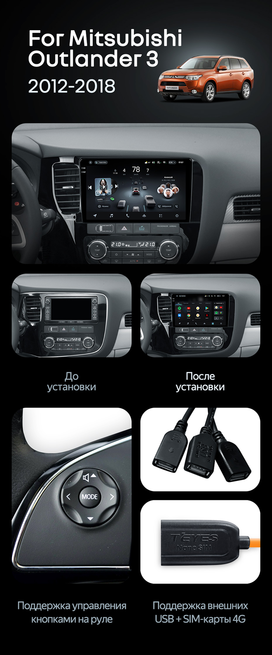 Штатная магнитола Teyes CC4 Pro 8/128 Mitsubishi Outlander 3 (2012-2018) Тип-A - купить всего за 56 130 руб. в интернет-магазине во Владимире Teyes.com.ru. ✓ Самый лучший выбор мультимедиа ✓ Лучшая замена штатному ГУ ✓ Тел. +7 (800) 775-31-74
