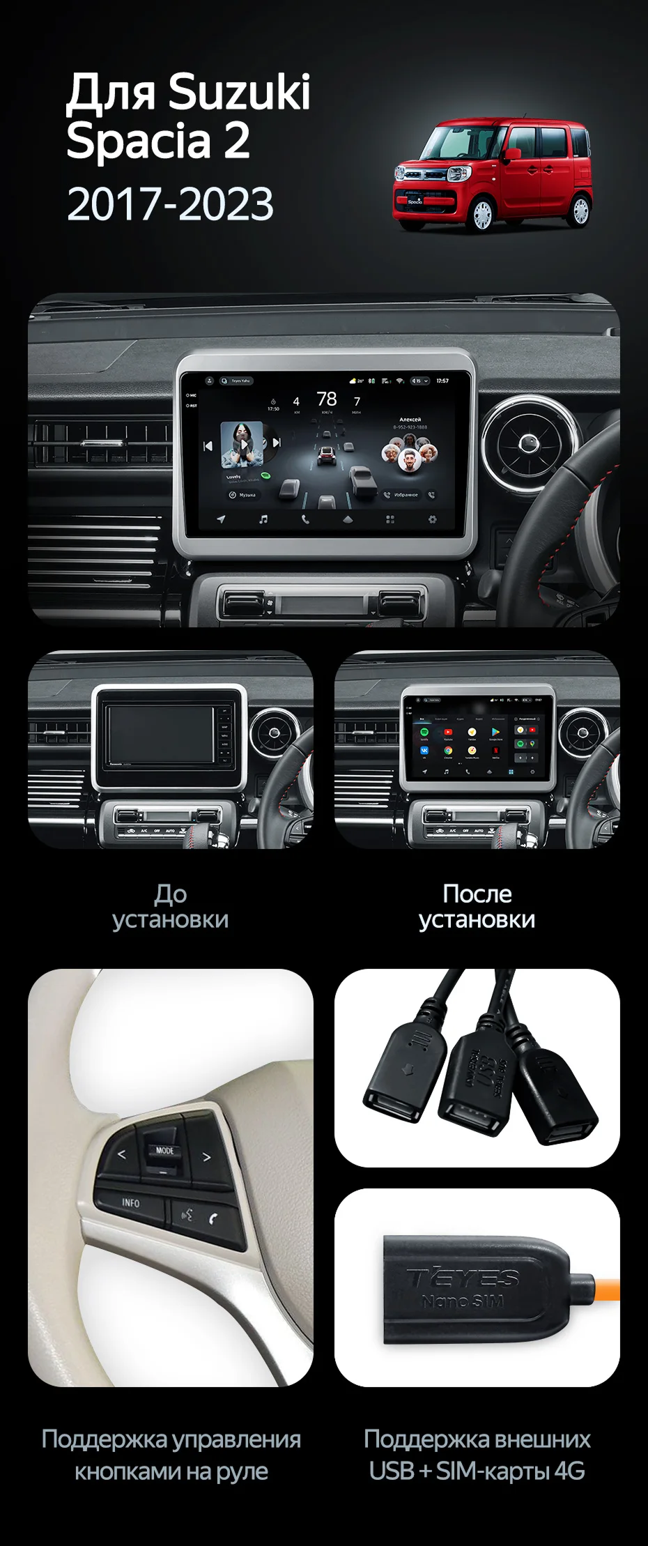 Штатная магнитола Teyes CC4 Pro 8/128 Suzuki Spacia 2 (2017-2023) - купить всего за 58 850 руб. в интернет-магазине во Владимире Teyes.com.ru. ✓ Самый лучший выбор мультимедиа ✓ Лучшая замена штатному ГУ ✓ Тел. +7 (800) 775-31-74