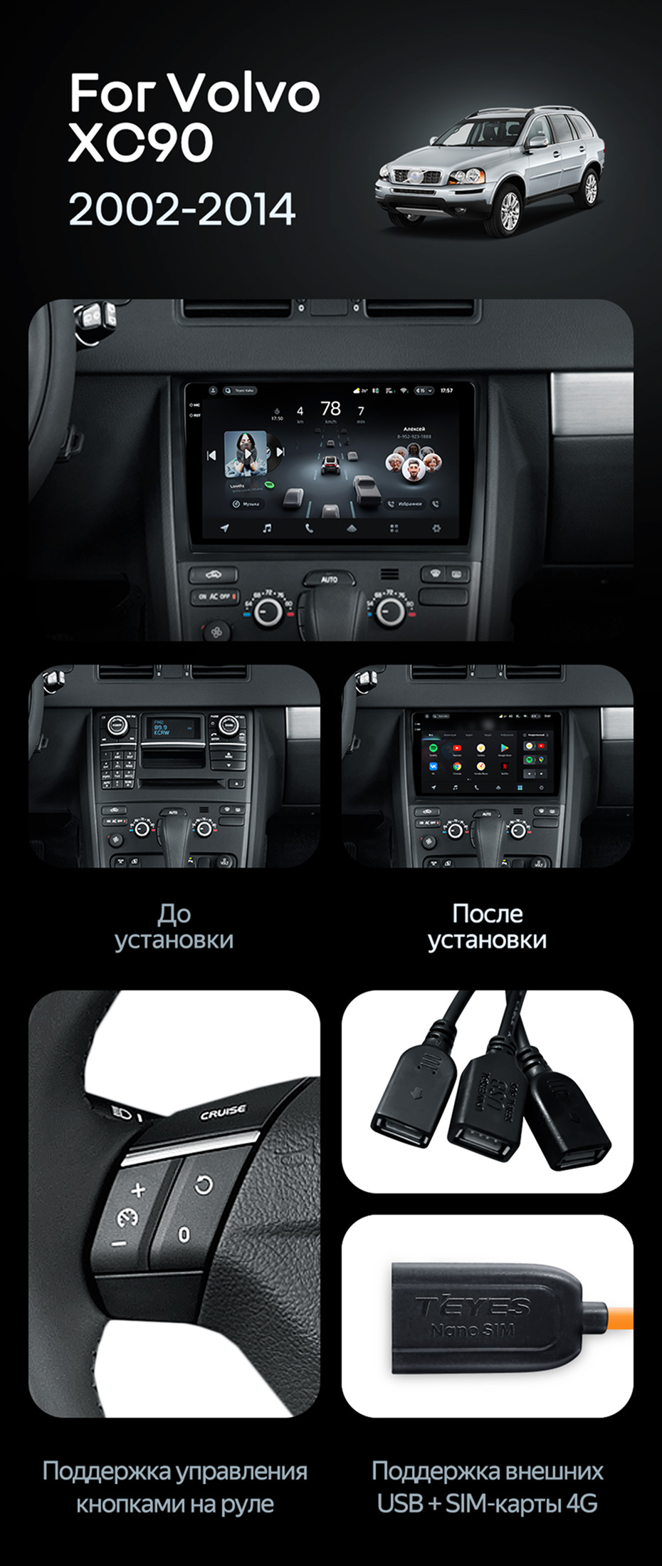Штатная магнитола Teyes CC4 Pro 8/128 Volvo XC90 (2007-2014) F2 (комплект для установки нижней части) - купить всего за 62 050 руб. в интернет-магазине во Владимире Teyes.com.ru. ✓ Самый лучший выбор мультимедиа ✓ Лучшая замена штатному ГУ ✓ Тел. +7 (800) 775-31-74
