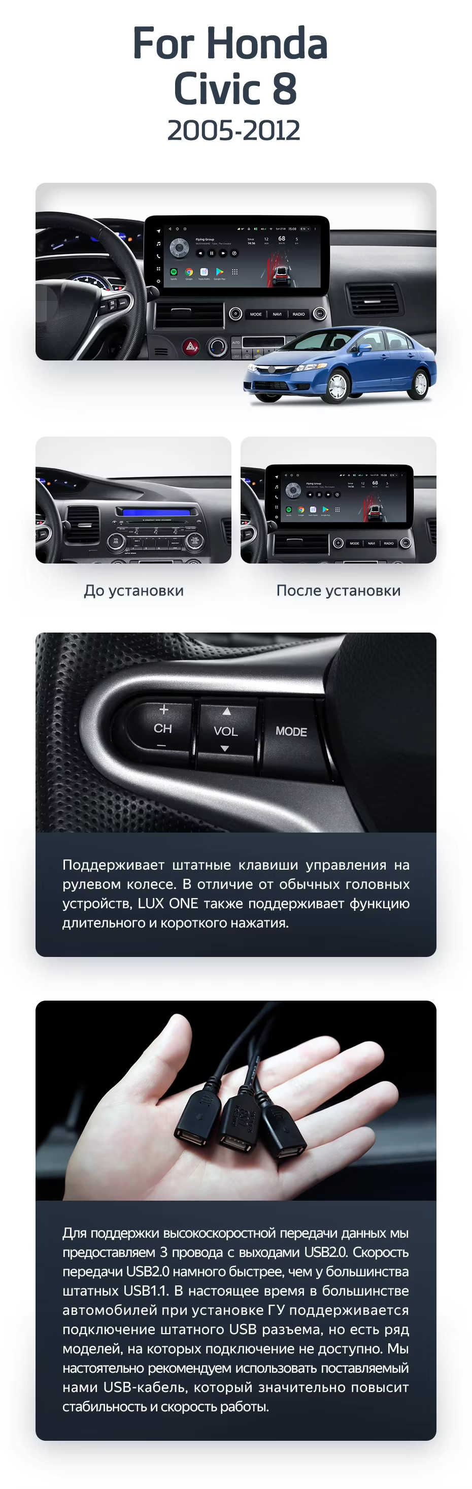 Штатная магнитола Teyes LUX ONE 4/64 Honda Civic 8 FK FN FD (2005-2012) - купить всего за 44 060 руб. в интернет-магазине во Владимире Teyes.com.ru. ✓ Самый лучший выбор мультимедиа ✓ Лучшая замена штатному ГУ ✓ Тел. +7 (800) 775-31-74