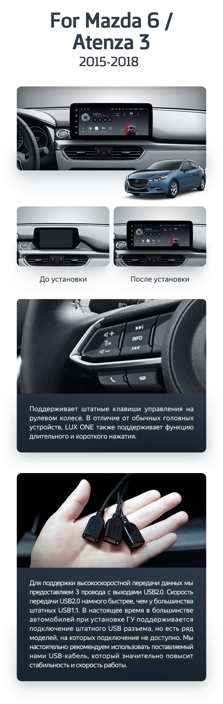 Штатная магнитола Teyes LUX ONE 4/64 Mazda Atenza 3 (2015-2018) Тип-A Правый руль - купить всего за 39 430 руб. в интернет-магазине во Владимире Teyes.com.ru. ✓ Самый лучший выбор мультимедиа ✓ Лучшая замена штатному ГУ ✓ Тел. +7 (800) 775-31-74