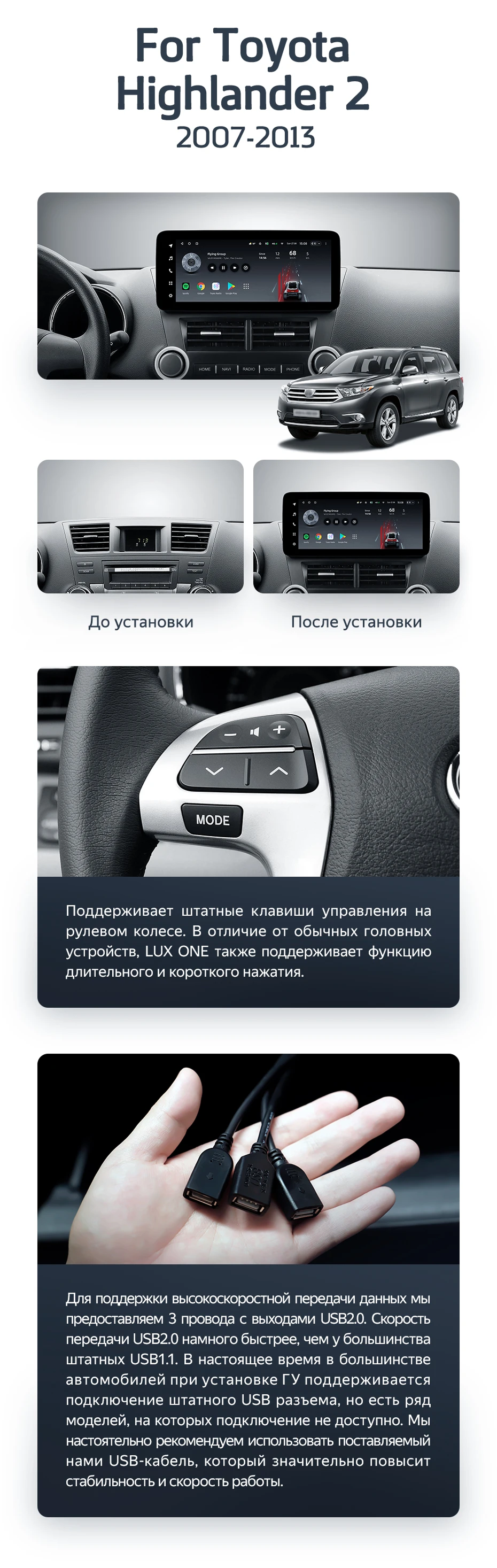 Штатная магнитола Teyes LUX ONE 4/64 Toyota Highlander 2 XU40 (2007-2013) - купить всего за 43 330 руб. в интернет-магазине во Владимире Teyes.com.ru. ✓ Самый лучший выбор мультимедиа ✓ Лучшая замена штатному ГУ ✓ Тел. +7 (800) 775-31-74