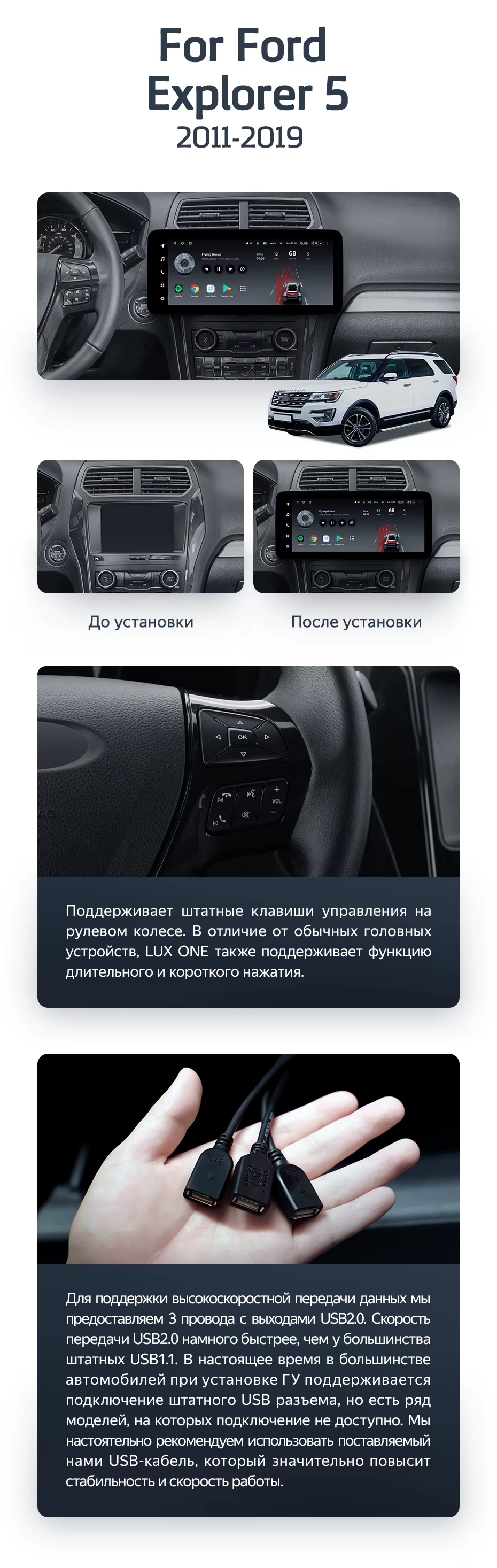 Штатная магнитола Teyes LUX ONE 6/128 Ford Explorer 5 (2011-2019) - купить всего за 54 000 руб. в интернет-магазине во Владимире Teyes.com.ru. ✓ Самый лучший выбор мультимедиа ✓ Лучшая замена штатному ГУ ✓ Тел. +7 (800) 775-31-74