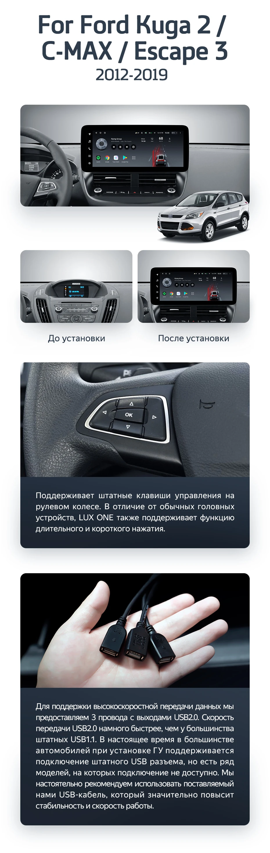 Штатная магнитола Teyes LUX ONE 6/128 Ford Kuga 2 (2012-2019) - купить всего за 51 400 руб. в интернет-магазине во Владимире Teyes.com.ru. ✓ Самый лучший выбор мультимедиа ✓ Лучшая замена штатному ГУ ✓ Тел. +7 (800) 775-31-74