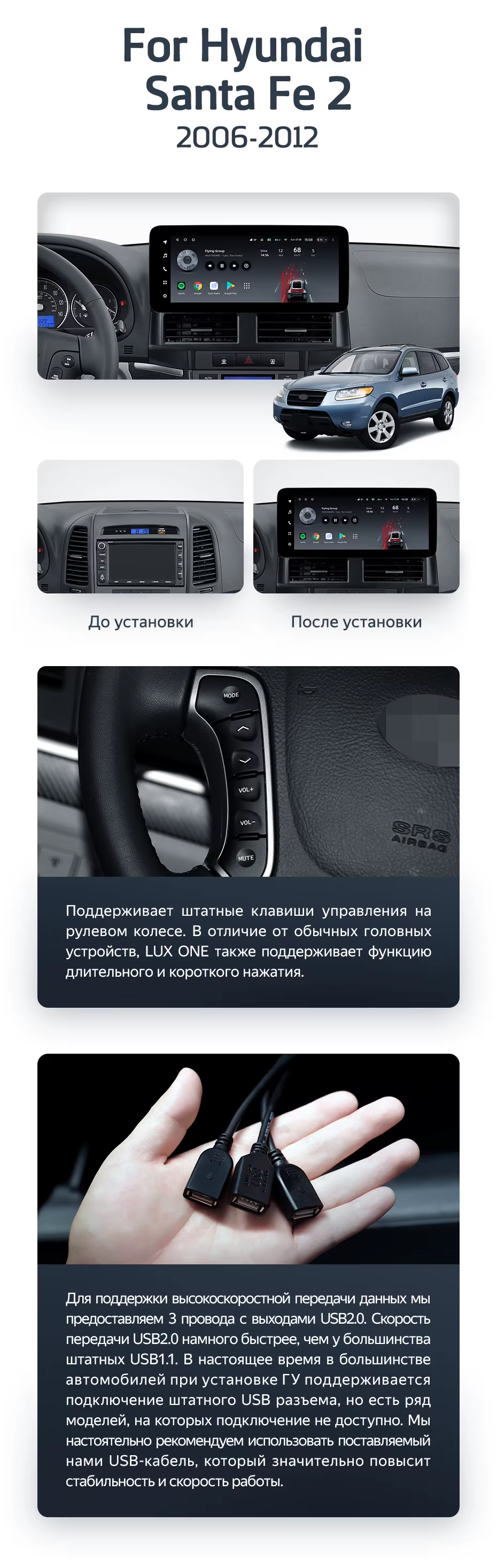 Штатная магнитола Teyes LUX ONE 6/128 Hyundai Santa Fe 2 (2006-2012) - купить всего за 52 000 руб. в интернет-магазине во Владимире Teyes.com.ru. ✓ Самый лучший выбор мультимедиа ✓ Лучшая замена штатному ГУ ✓ Тел. +7 (800) 775-31-74