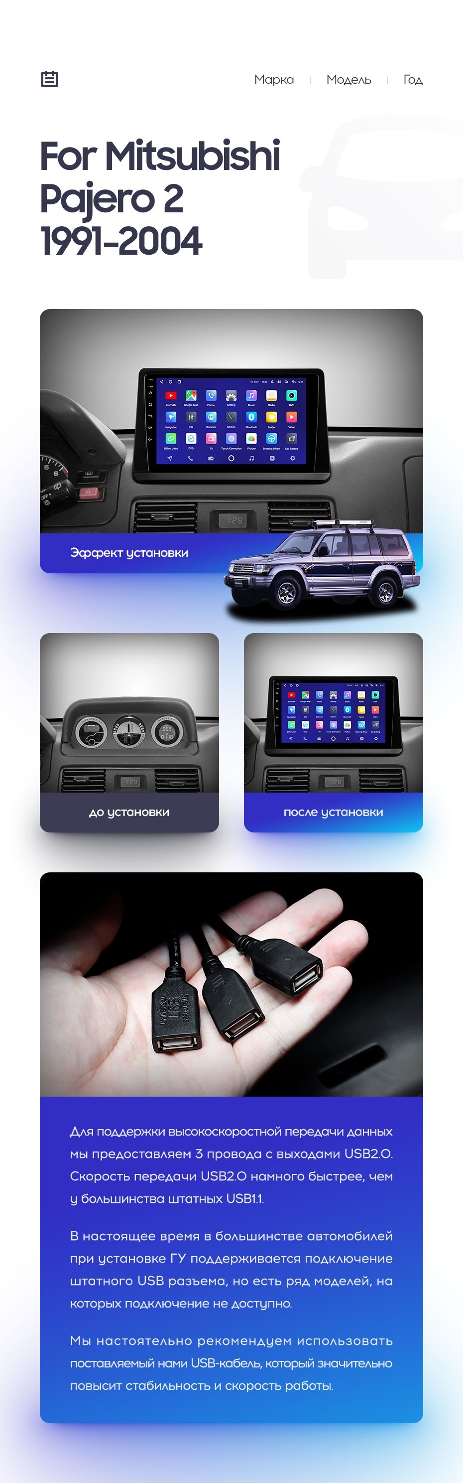 Полный комплект установки магнитолы Teyes с рамкой и проводкой можно выбрать в каталоге штатных магнитол Mitsubishi Pajero 2 (1991-2004).