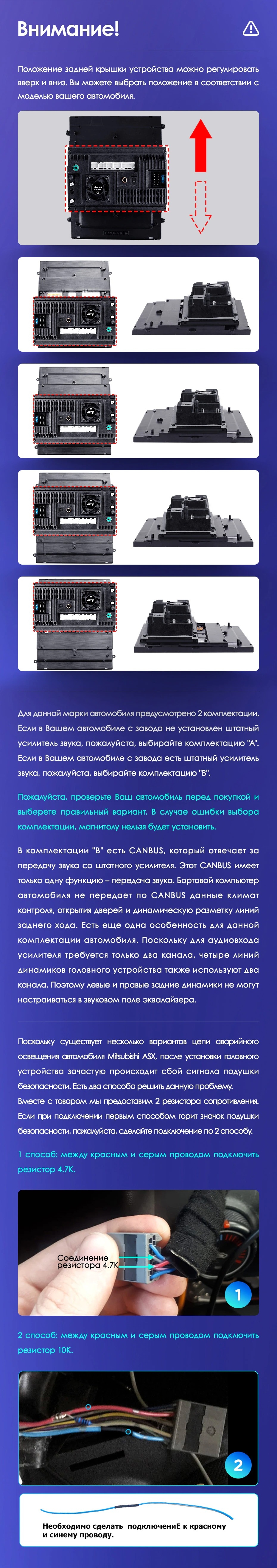 Полный комплект установки магнитолы Teyes с рамкой и проводкой можно выбрать в каталоге штатных магнитол Mitsubishi ASX 1 2010-2016.